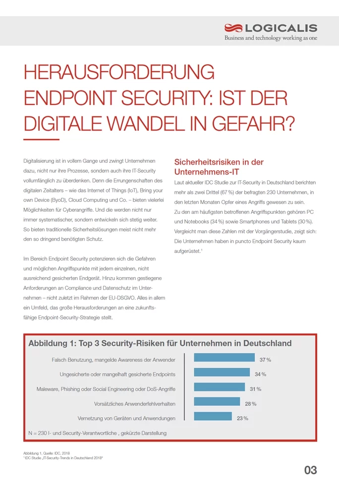 Logicalis ist Ihr zuverlässiger und erfahrener Begleiter auf dem Weg zu einer sicheren IT-Infrastruktur. Uns verbindet eine enge Partnerschaft mit unseren Security-Herstellern, wie zum Beispiel Cisco. Mit Hilfe unseres Ratgebers bekommen Sie einen guten Überblick über das Risiko von ungesicherten Endgeräten und erhalten wertvolle Impulse zum Schutz Ihres Unternehmens.