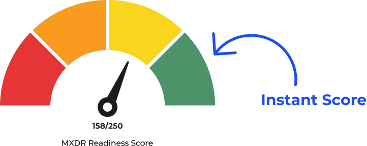 Beantworten Sie einfach 25 Multiple-Choice-Fragen – direkt im Anschluss erhalten Sie Ihre individuelle MXDR-Score (bis zu 250 Punkte) sowie einen persönlichen Bewertungsreport per E-Mail.